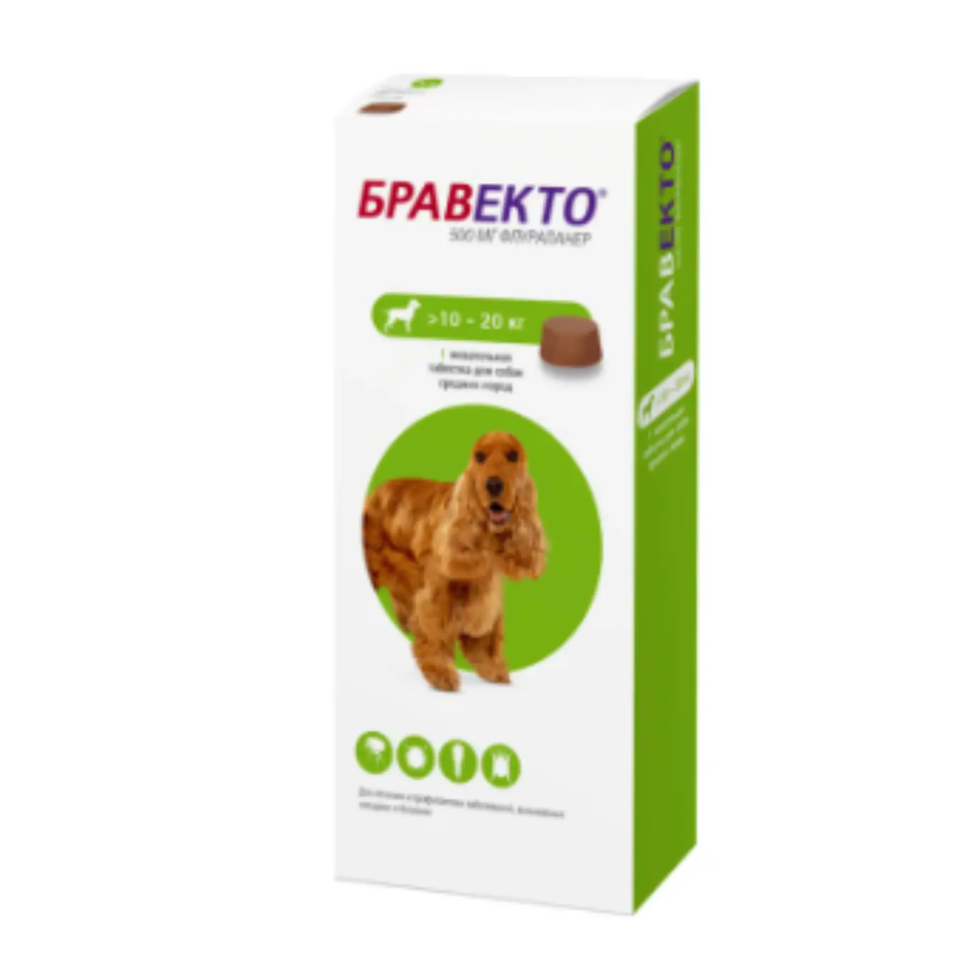 Bravecto® 500mg is designed for dogs weighing 10–20 kg for the treatment and prevention of external parasites 🐶