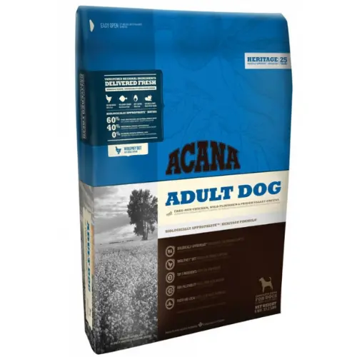 ACANA Adult Dog is a complete and balanced dry food suitable for dogs of all breeds and all life stages. Made with top-quality natural ingredients, including: