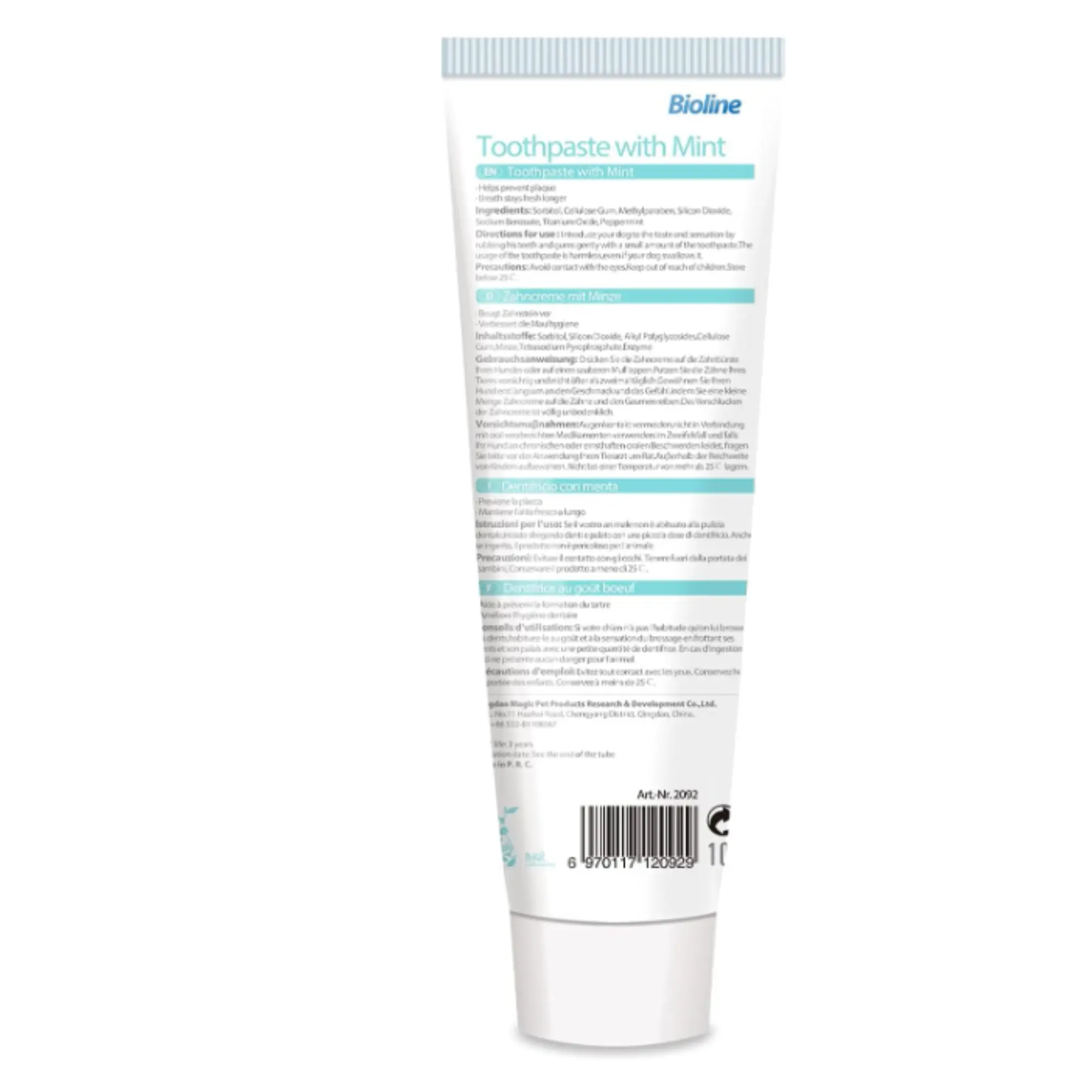 Bioline mint-flavored toothpaste is designed for oral care and maintaining dental health in dogs and cats 🐾💚