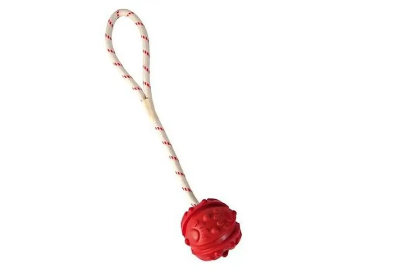 The Trixie ball and rope toy is perfect for active play and training for dogs. Made from natural rubber 🌿, ensuring safety and durability.