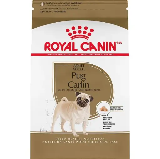 Pugs have a unique brachycephalic jaw, making it harder for them to grasp and chew regular kibble. That’s why Royal Canin Pug Adult features specially designed kibble for easier eating 🍽️ and better digestion. Enriched with Omega-3 fatty acids (EPA & DHA), it supports skin health and a shiny coat ✨. High-quality protein maintains muscle tone 💪, while adapted nutrients help your Pug stay at an ideal weight ⚖️.