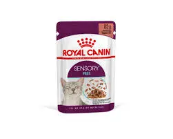 A wet food for adult cats in tasty gravy, designed to stimulate the senses and provide a unique mealtime experience.