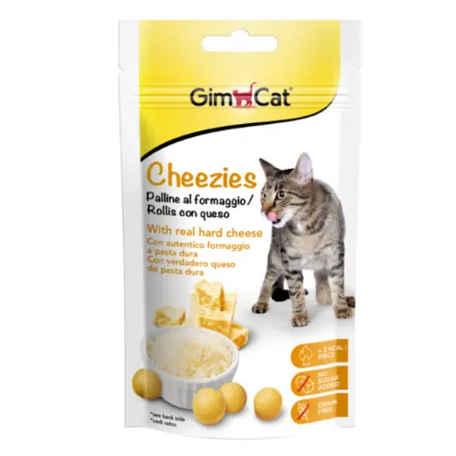 GimCat Cheezies are delicious cat snacks refined with real hard cheese 🧀✨