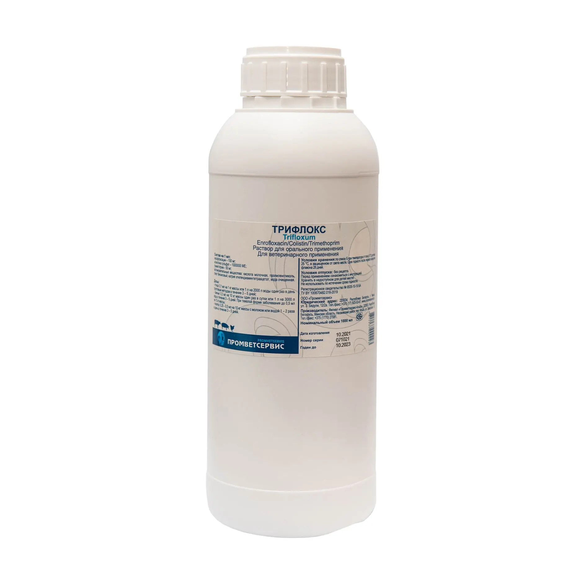 Triflox is a broad-spectrum antibacterial complex designed for pigs, calves, and poultry.