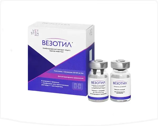 Vezotil is a veterinary injectable anesthetic used in dogs and cats to induce controlled general anesthesia.