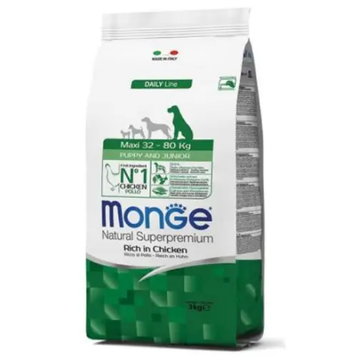 Monge Maxi Puppy/Junior կերը նախատեսված է մեծ ցեղատեսակի շան ձագերի (2 ամսականից մինչև 1 տարեկան, մինչև 80 կգ մեծացող շների) համար, ապահովելով սննդարար, առողջ և համեղ սնունդ 🐕✨