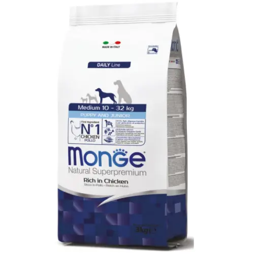 Monge Medium Puppy & Junior կերը նախատեսված է միջին ցեղատեսակի շների ձագերի համար, ապահովելով սննդարար, առողջ և համեղ սնունդ 🐕✨