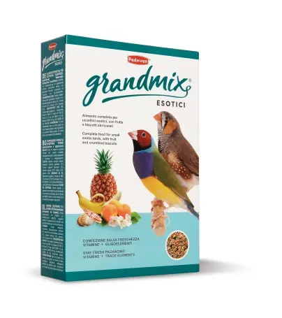 GrandMix Esotici–ն պարունակում է ընտրված հացահատիկներ և սերմեր, չորացրած մրգեր 🍍, փշրված բլիթներ 🍪 և մանրացված ծովախեցիներ 🐚։
