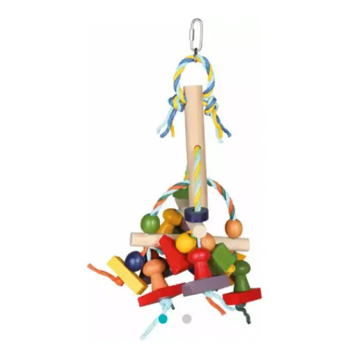 Այս գունավոր և հետաքրքիր խաղալիքը նախատեսված է կորելլաների, երկարապոչ թութակների և նմանատիպ չափի թռչունների համար։