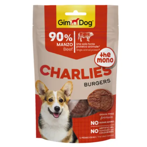 GIMDOG CHARLIES THE MONO բուրգերները պատրաստված են միակ կենդանական սպիտակուցի աղբյուրով՝ ապահովելով բարձր սպիտակուցային արժեք և համեղություն 🐕💪