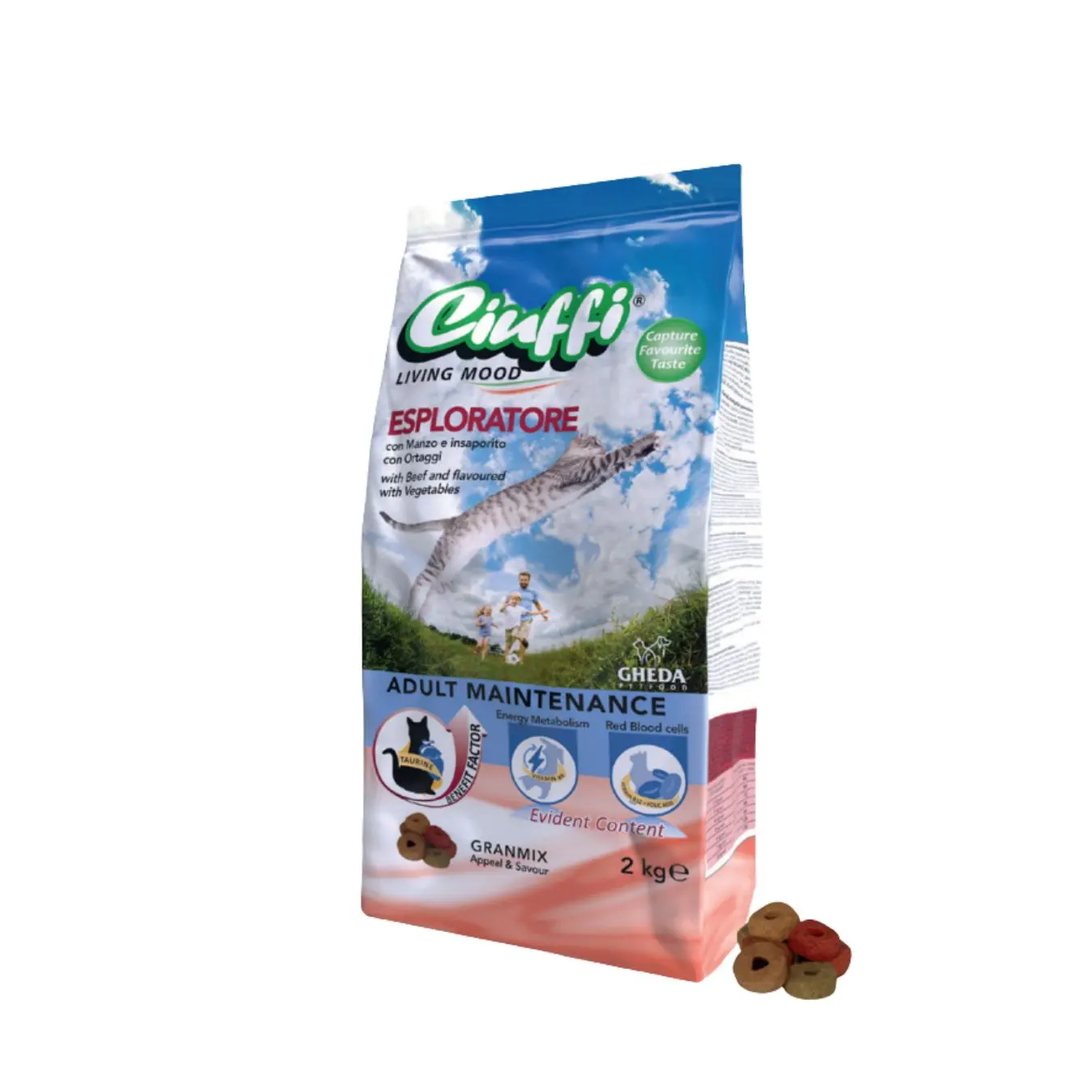 ESPLORATORE-ը լիարժեք չոր կեր է մեծահասակ կատուների համար՝ հարստացված տավարի մսով և բանջարեղենային համով։