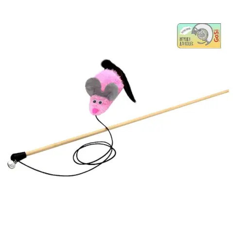 Կարթ խաղալիք՝ մեծ ականջներով մկնիկով, բնական մորթուց և փայտից՝ կատուների ակտիվ խաղի համար 🐱✨