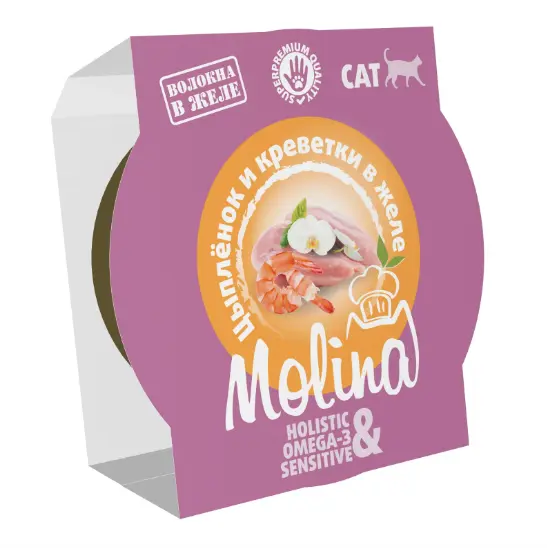 MOLINA Holistic լամիստերը՝ ճուտի մսով (62%) 🍗 և խեցգետնով (10%) 🍤, պատրաստված բուրավետ ժելեում 🍮՝ ֆուկուսի հավելումով 🌿։