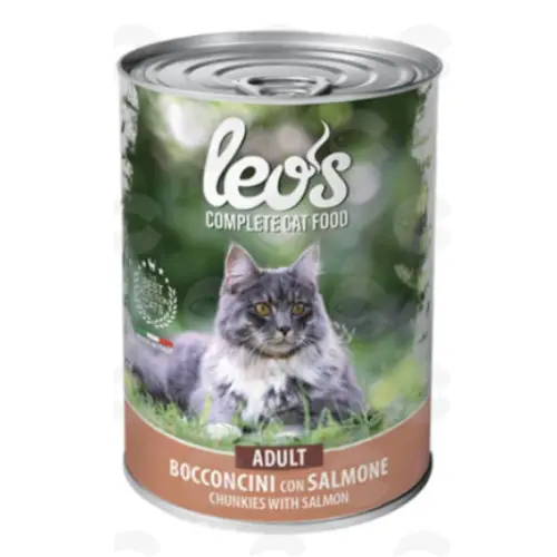 Monge LEO'S Adult պահածոն նախատեսված է կատուների համար, պատրաստված սաղմոնի մսով և մսային հավելումներով, ապահովելով ամբողջական և համահունչ սնուցում 🐱✨։