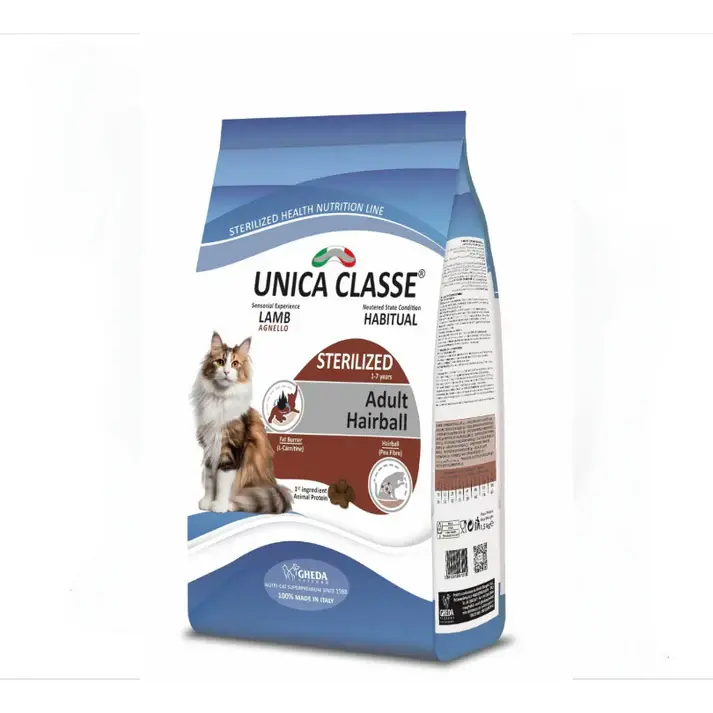 GHEDA UNICA CLASSE-ը սուպերպրեմիում չոր կեր է ստերիլիզացված մեծահասակ կատուների համար, որի բանաձևը նախատեսված է ճարպի արդյունավետ այրման և մազային գնդիկների ձևավորման կանխման համար։💪