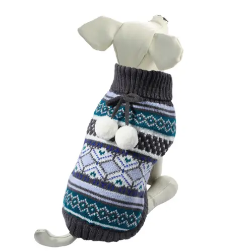Տաք և ոճային սվիտեր շների համար՝ պոմպոններով զարդարված, մուգ մոխրագույն գույնով ❄️🩶