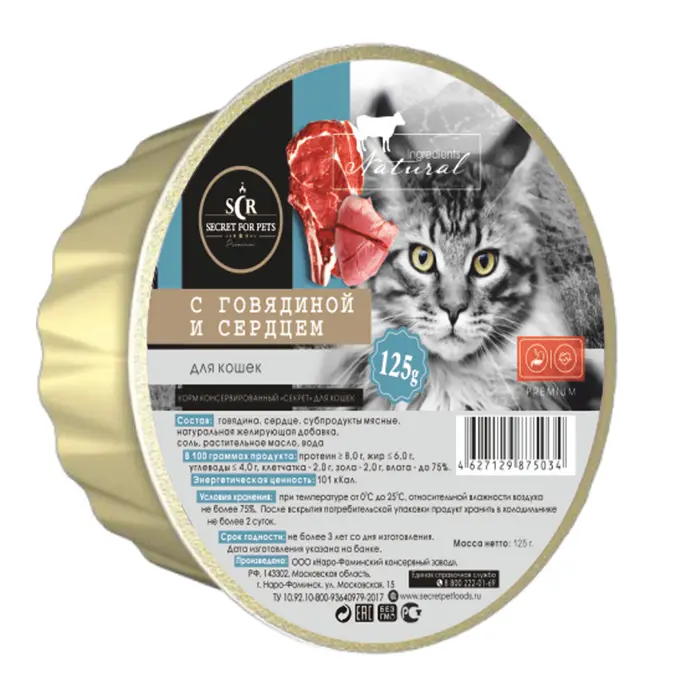 SECRET Premium շարքի այս համեղ և բարձրորակ թաց կերը հիմնված է տավարի մսի և սրտի վրա։ Այն պարունակում է միայն բնական բաղադրիչներ, չի պարունակում արհեստական հավելումներ կամ վնասակար նյութեր։ Բարձր սպիտակուցային արժեքով և հեշտամարս բաղադրությամբ այս կերը հիանալի ընտրություն է ինչպես ամենօրյա սնուցման, այնպես էլ հատուկ խնամքի համար։