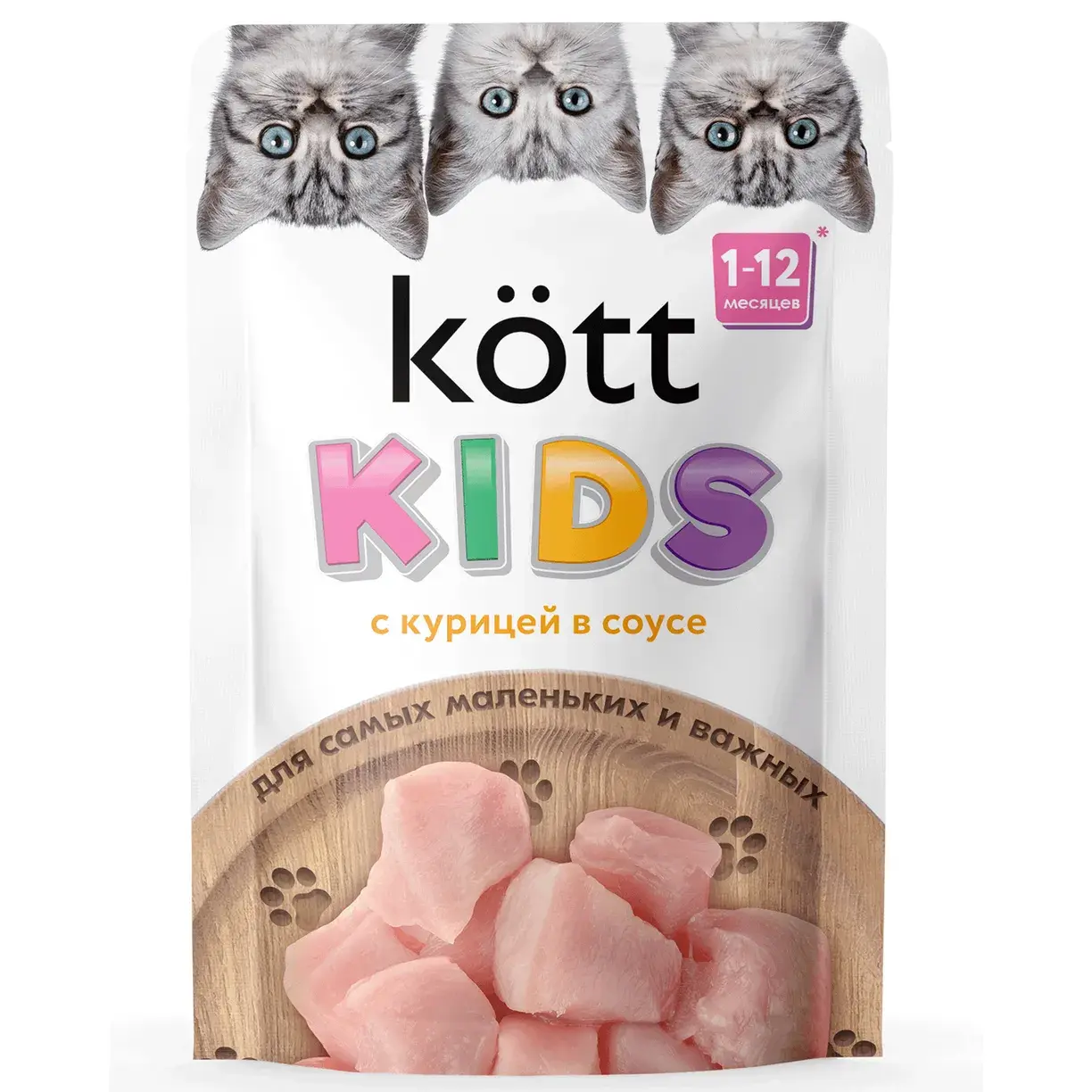 Kött թաց կերը՝ հատուկ մշակված 1-12 ամսական կատվիկների համար, ապահովում է լիարժեք սնուցում աճի ամենակարևոր փուլում։ Համեղ հավի ու խոզի մսով բաղադրությունը դարձնում է այն սիրելի ճաշատեսակ։