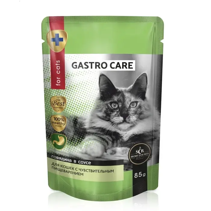 Թաց կեր կատուների համար, զգայուն մարսողության պայմաններում SECRET Gastro (Տավարի Միս, 85 գ)
