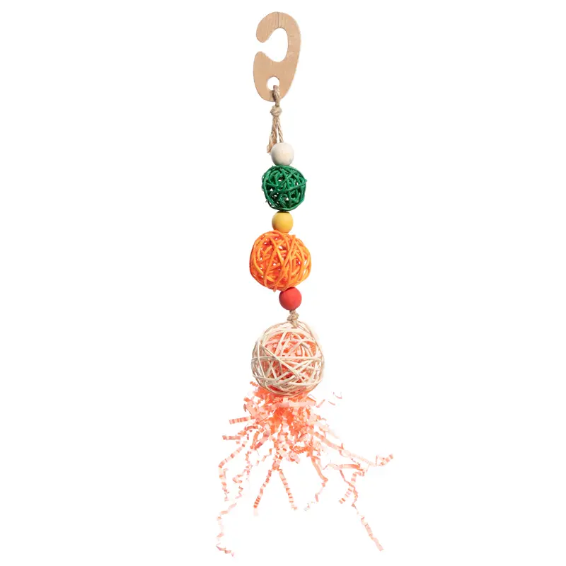 ✨ Բնական նյութերից պատրաստված զվարճալի խաղալիք, որը խթանում է թռչունների ակտիվությունն ու հետաքրքրասիրությունը։