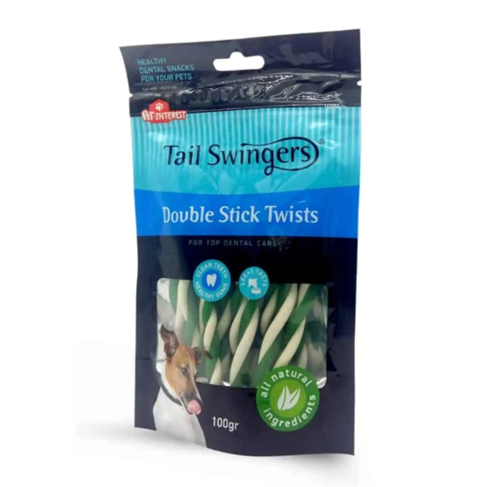 Tailswingers Double Sticks Twists — дентальное лакомство для собак, предназначенное для поддержания здоровья полости рта. Скрученная форма палочек способствует эффективной очистке зубов, укреплению челюсти и уходу за дёснами, обеспечивая свежесть дыхания и отличный вкус.