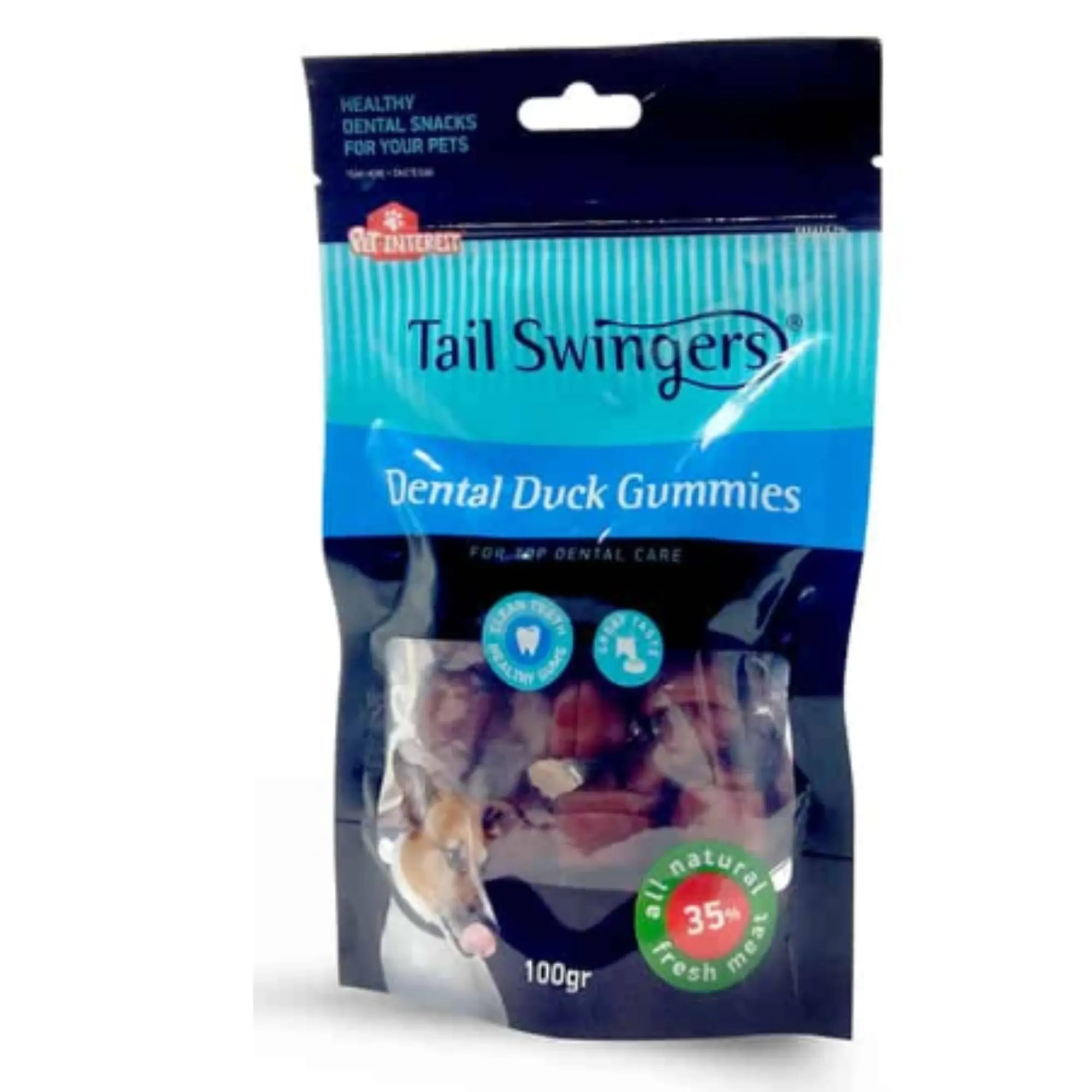Tailswingers Dental Duck Gummies — лакомство для собак, которое помогает поддерживать здоровье ротовой полости. Чистит зубы, тренирует челюсть и ухаживает за дёснами, обеспечивая свежесть дыхания и отличный вкус.