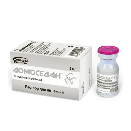 Домоседан — это 1% раствор для инъекций, содержащий медетомидин, используемый у собак и кошек для:
