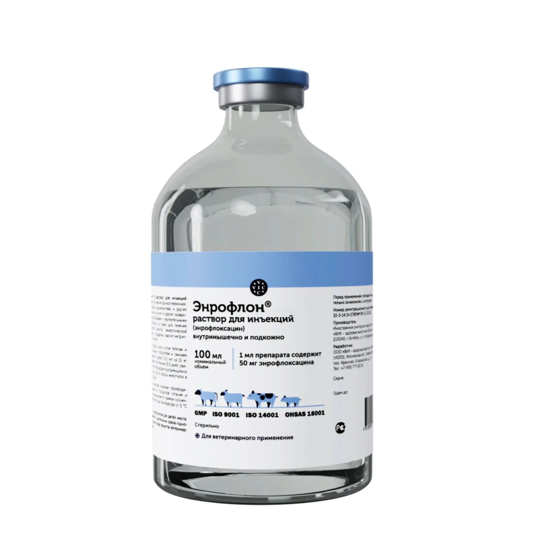 Антибактериальный препарат широкого спектра действия из группы фторхинолонов для лечения инфекций дыхательной, пищеварительной и мочеполовой систем у животных 🐄🐖🐑🐐.