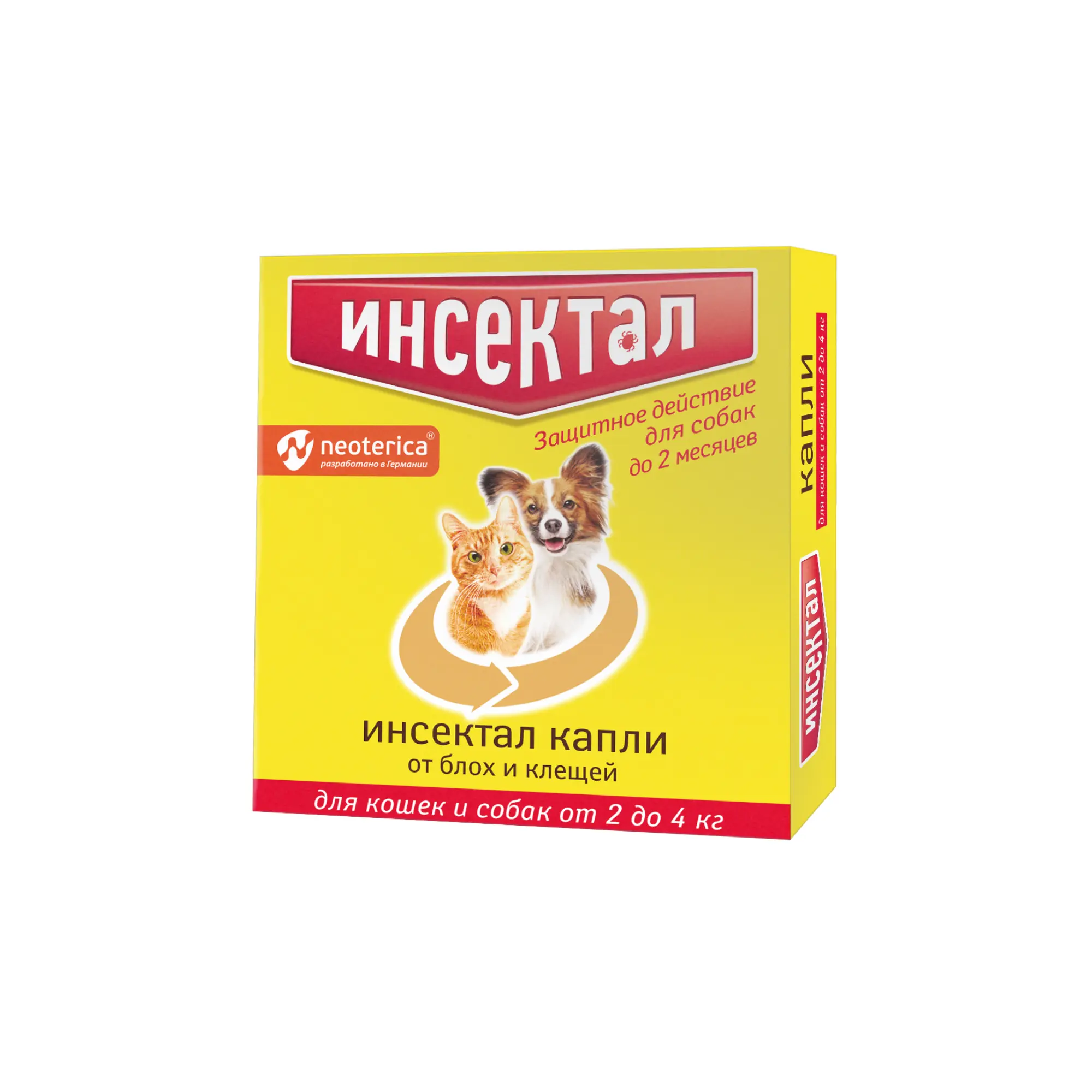 Капли Инсектал назначают собакам и кошкам старше 3 месяцев весом от 2 до 4 кг. Средство обеспечивает до 30 дней надежной защиты от клещей и до 2 месяцев — от блох и других насекомых 💪🐜. Перед использованием обязательно ознакомьтесь с инструкцией на упаковке для достижения максимальной эффективности.