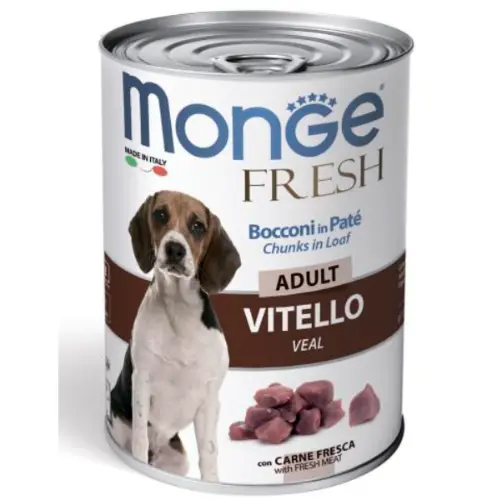 Консервы Monge FRESH Adult Veal предназначены для взрослых собак. Содержат высококачественную телятину, богатую белком, поддерживающим мышечную массу, активность и жизненный тонус.