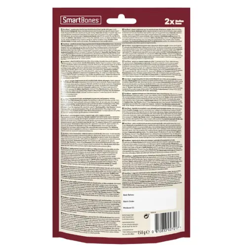 SMART BONES с узлами предназначены для собак и изготовлены из арахисового масла, куриного мяса и овощей։