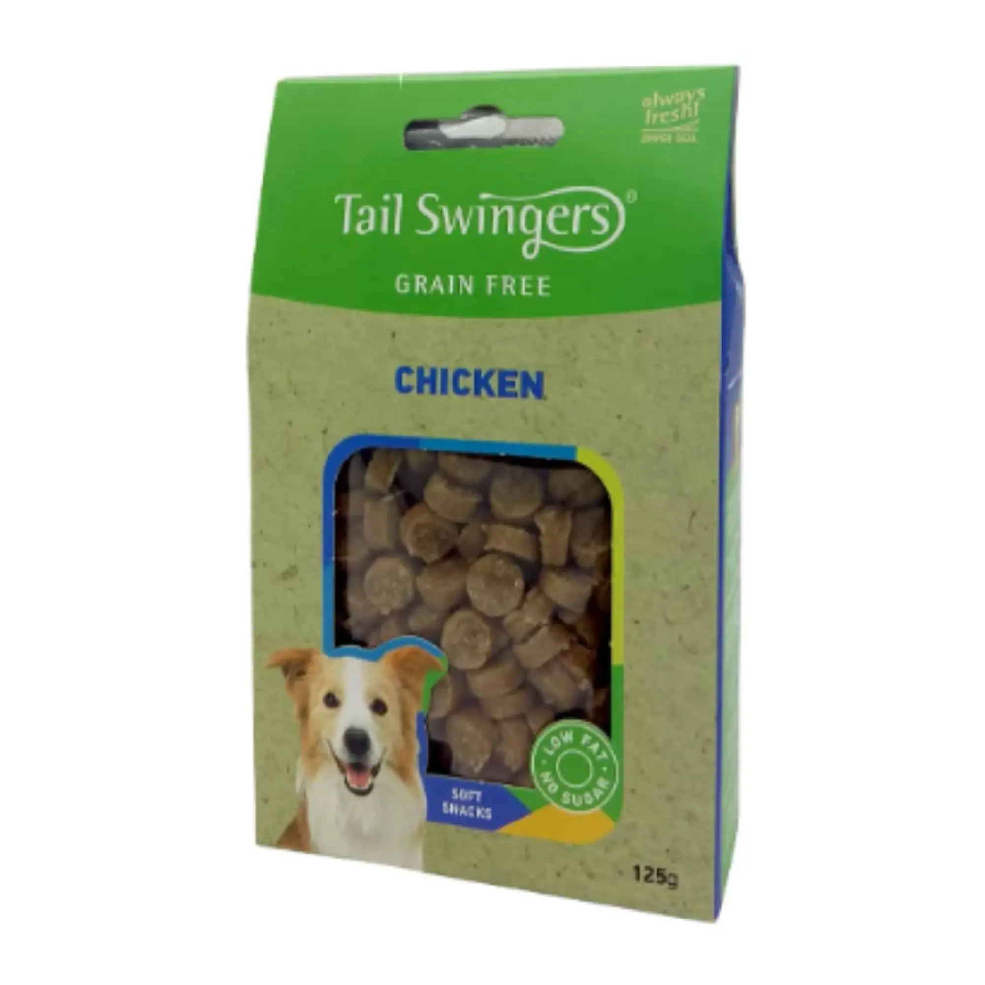 Tailswingers Soft Grain Free Chicken — это мягкое, полувлажное и высококачественное лакомство для собак. Беззерновая формула делает его легко усваиваемым и подходящим даже для собак с чувствительным пищеварением.