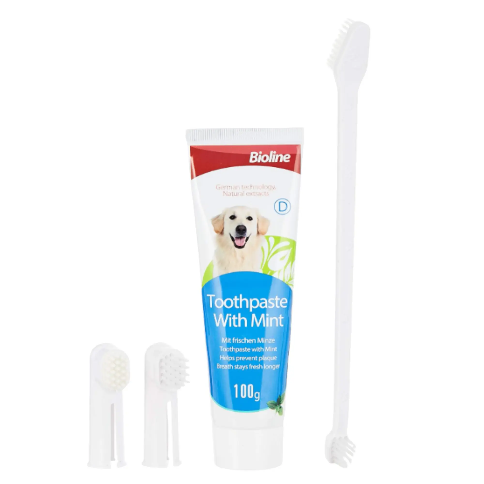 Набор для гигиены зубов Bioline предназначен для ухода за полостью рта собак 🐾💚