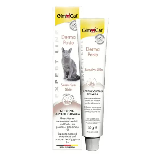 GimCat Derma Paste специально разработана для поддержки кожи и шерсти кошек, помогая улучшить состояние кожи и сохранить здоровую, блестящую шерсть 🐾✨