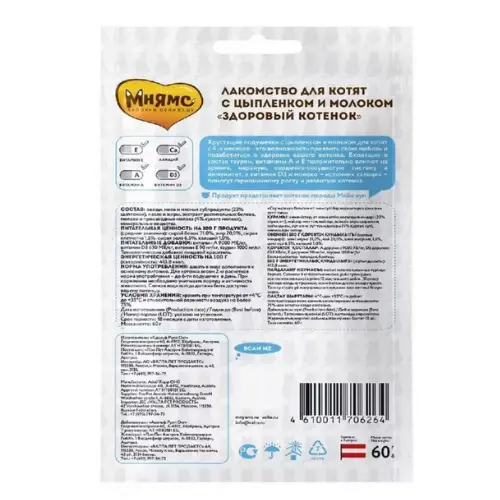 Подушечки Мнямс для котят являются питательной добавкой, способствующей правильному и гармоничному росту 🐾
