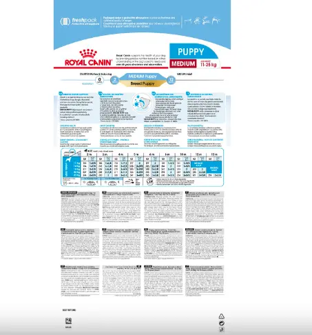 Продукт ROYAL CANIN® Medium Puppy разработан для щенков средних пород (вес взрослой собаки от 11 до 25 кг) в возрасте от 2 до 12 месяцев. Благодаря высокому содержанию белков ROYAL CANIN® Medium Puppy поддерживает гармоничное развитие щенка, рост его костей и мышц в течение относительно короткой фазы роста.