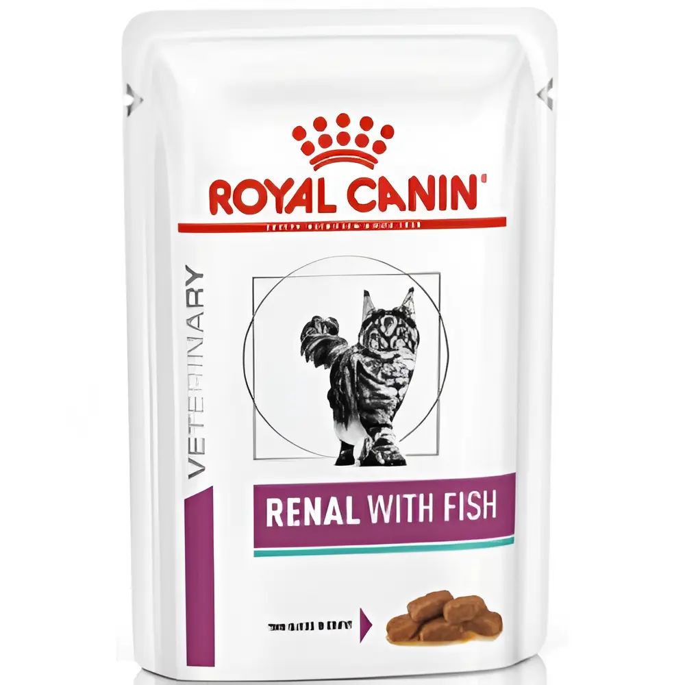 🐟 Диетическое питание с кусочками рыбы в соусе, предназначенное для кошек с хронической почечной недостаточностью.