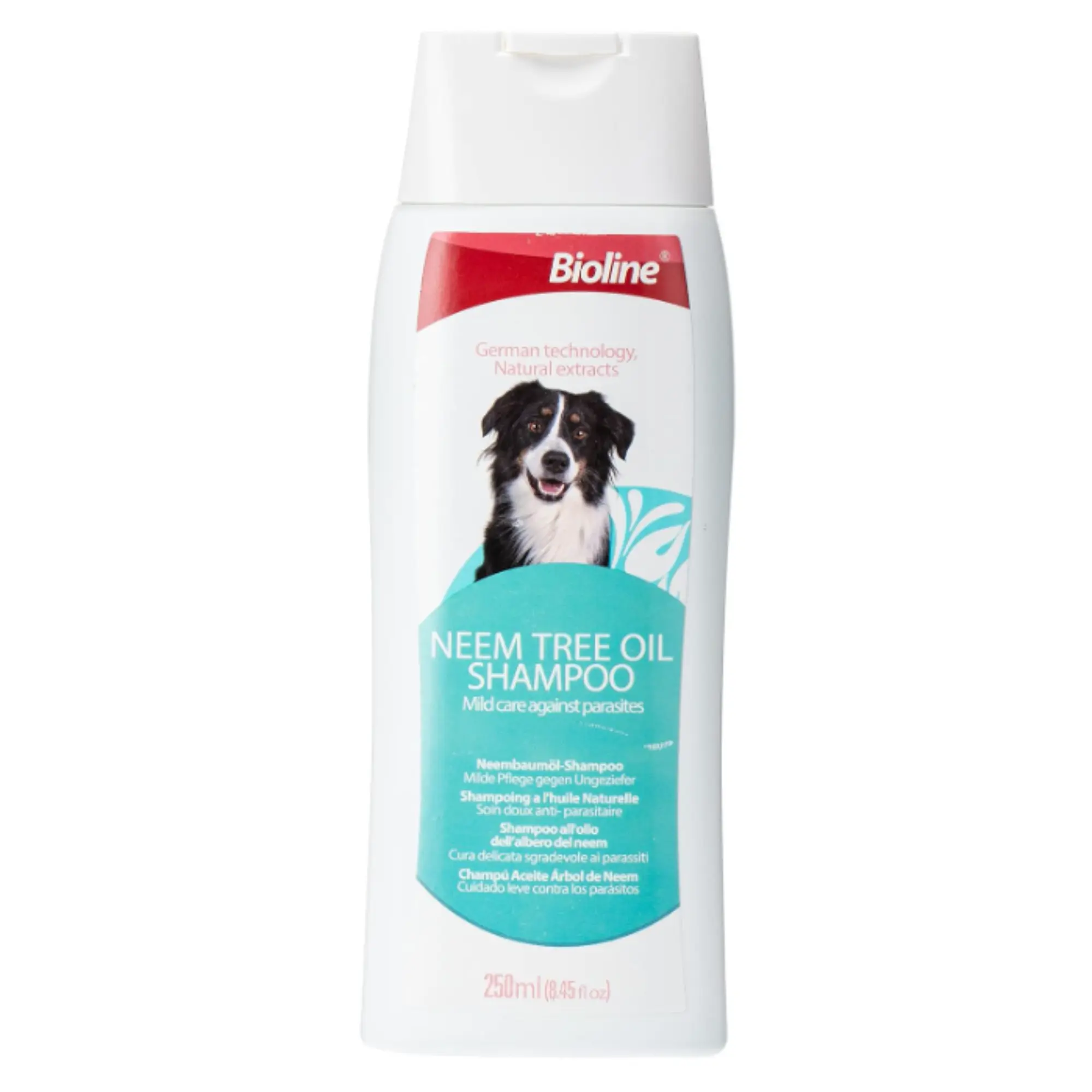 Bioline Neem Tree Oil Shampoo предназначен для ухода за кожей и шерстью собак. Масло нима традиционно используется против паразитов и помогает защищать собак от блох, клещей и других паразитов. Шампунь также успокаивает раздражённую кожу и уменьшает зуд.