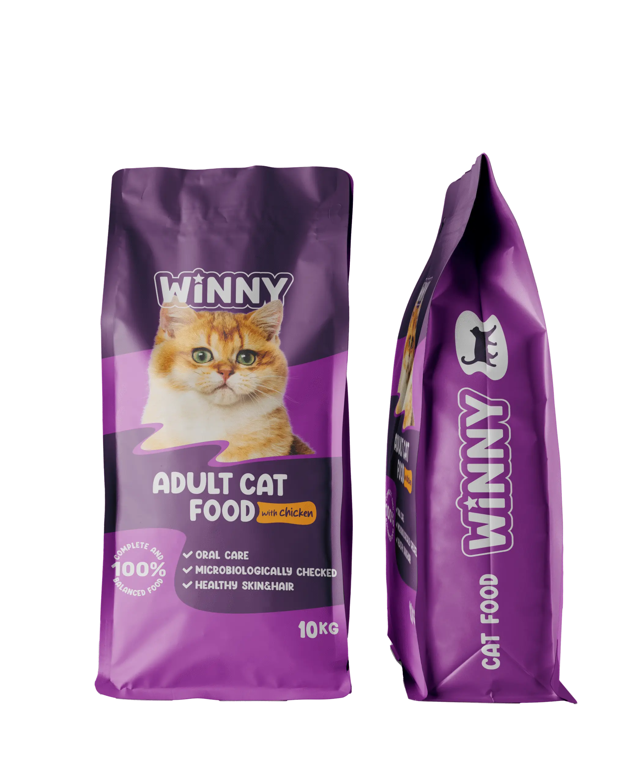 Содержит таурин, витамины и необходимые аминокислоты для поддержания зрения 👀, сердца ❤️ и общего здоровья. Подходит для ежедневного кормления 🍽️. Сбалансированный сухой корм Winny разработан специально для взрослых кошек всех пород 🐾. Сочетание качественных белков помогает полностью удовлетворить питательные потребности питомца и поддерживать здоровье мышц 💪. Корм содержит таурин, необходимый для остроты зрения 👁️ и здоровья сердечно-сосудистой системы ❤️. Комплекс витаминов E и C способствует укреплению иммунитета 🌿. В состав входят злаки 🌾, мясо курицы (7%), куриный жир и дрожжи 🥣. Всегда обеспечивайте кошку чистой питьевой водой 💧.