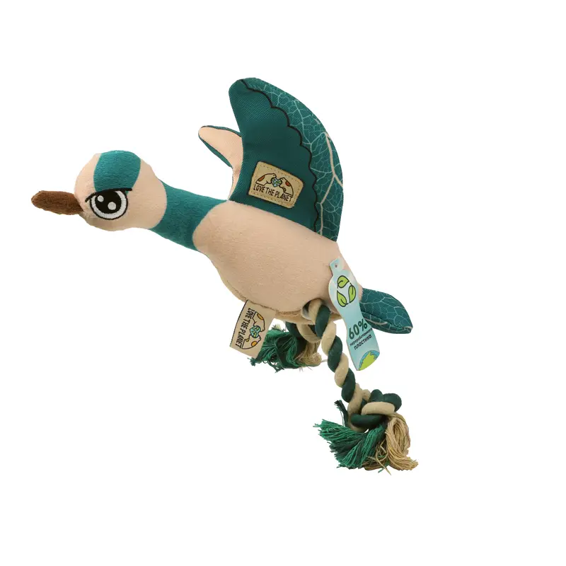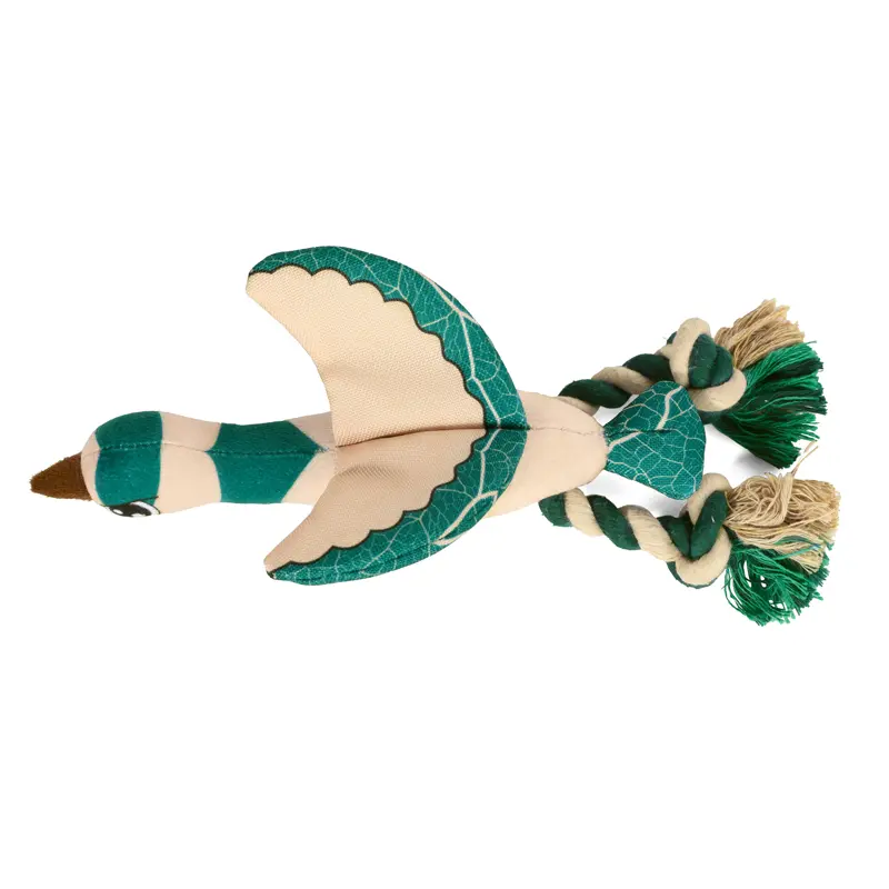 Мягкая игрушка серии LOVE THE PLANET создана из переработанных пластиковых бутылок, безопасных для питомца. «Горный гусь» подойдёт собакам разных пород, снабжён пищалкой для дополнительного интереса и хлопковыми канатами для очистки зубов.