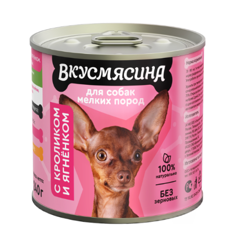 Պահածոյացված սնունդ նապաստակի մսով և գառով փոքր ցեղատեսակի - մսի հյութալի կտորներ են անուշահոտ սոուսով: Սնունդը մշակվում է հատուկ բաղադրատոմսով, որտեղ հաշվի է առնվում շների բոլոր կարիքներն ու ֆիզիկական բնութագրերը: Դրանք պարունակում են բոլոր անհրաժեշտ վիտամինները, հանքանյութերը և սնուցիչները՝ ձեր ընտանի կենդանուն առողջ պահելու համար: Հարմար է ամենօրյա կերակրման համար։